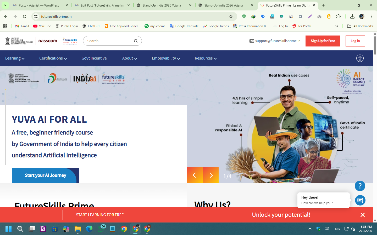 • FutureSkills Prime Incentive Program की आधिकारिक वेबसाइट पर जाएँ। “साइन अप” बटन पर क्लिक करें। अपना नाम, ईमेल पता और फ़ोन नंबर दर्ज करें।